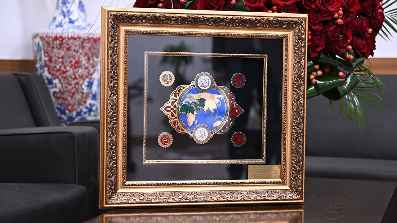 Sanatsal bir ahşap çerçeve içerisinde hazırlanan eserin Cumhurbaşkanı Erdoğan’a takdim edildiği bildirildi.
